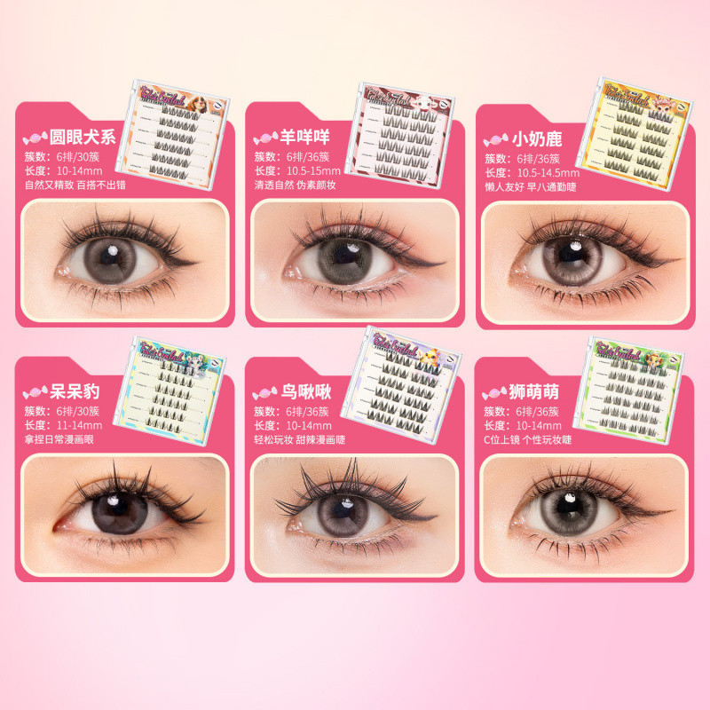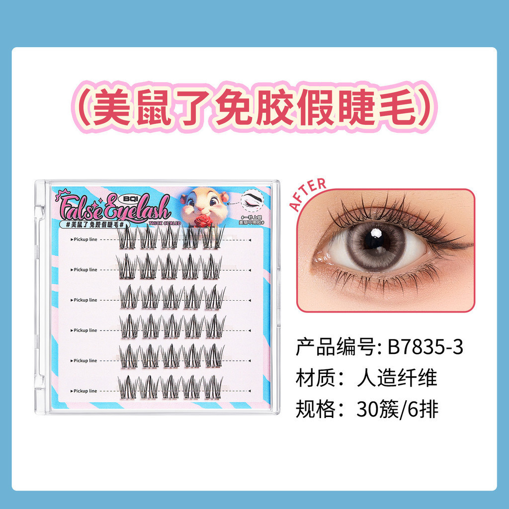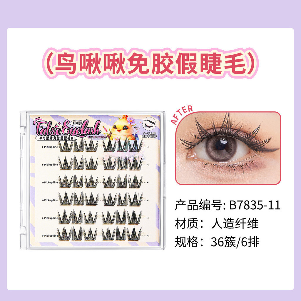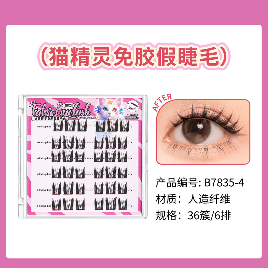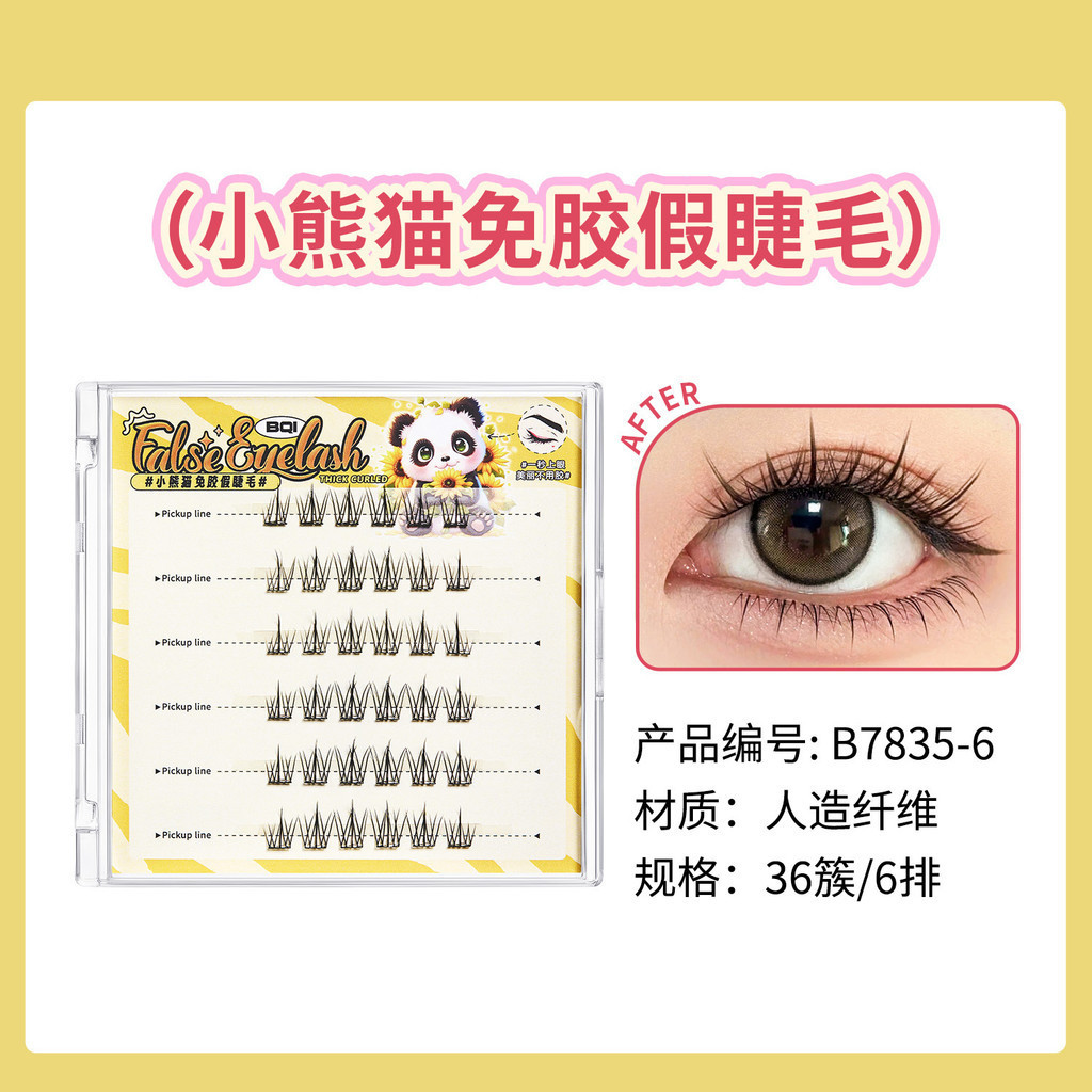 BQI Cute Pet Series Panda Non Glue False Eyelash Cat Elf Curling Segmented Grafting Non Detachable False Eyelashes Super Nature False Eyelashes