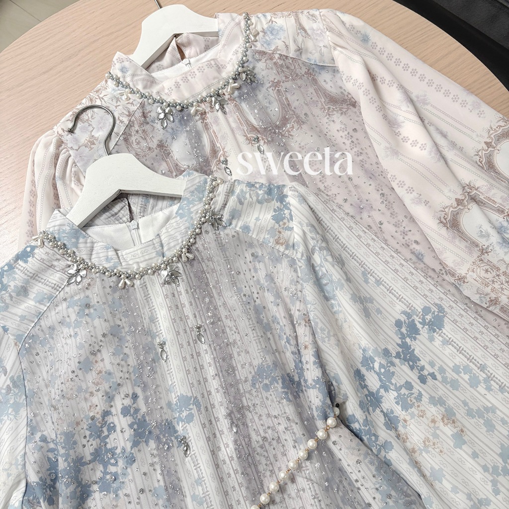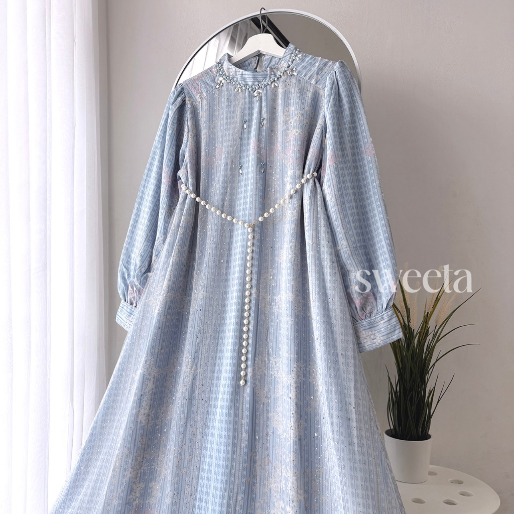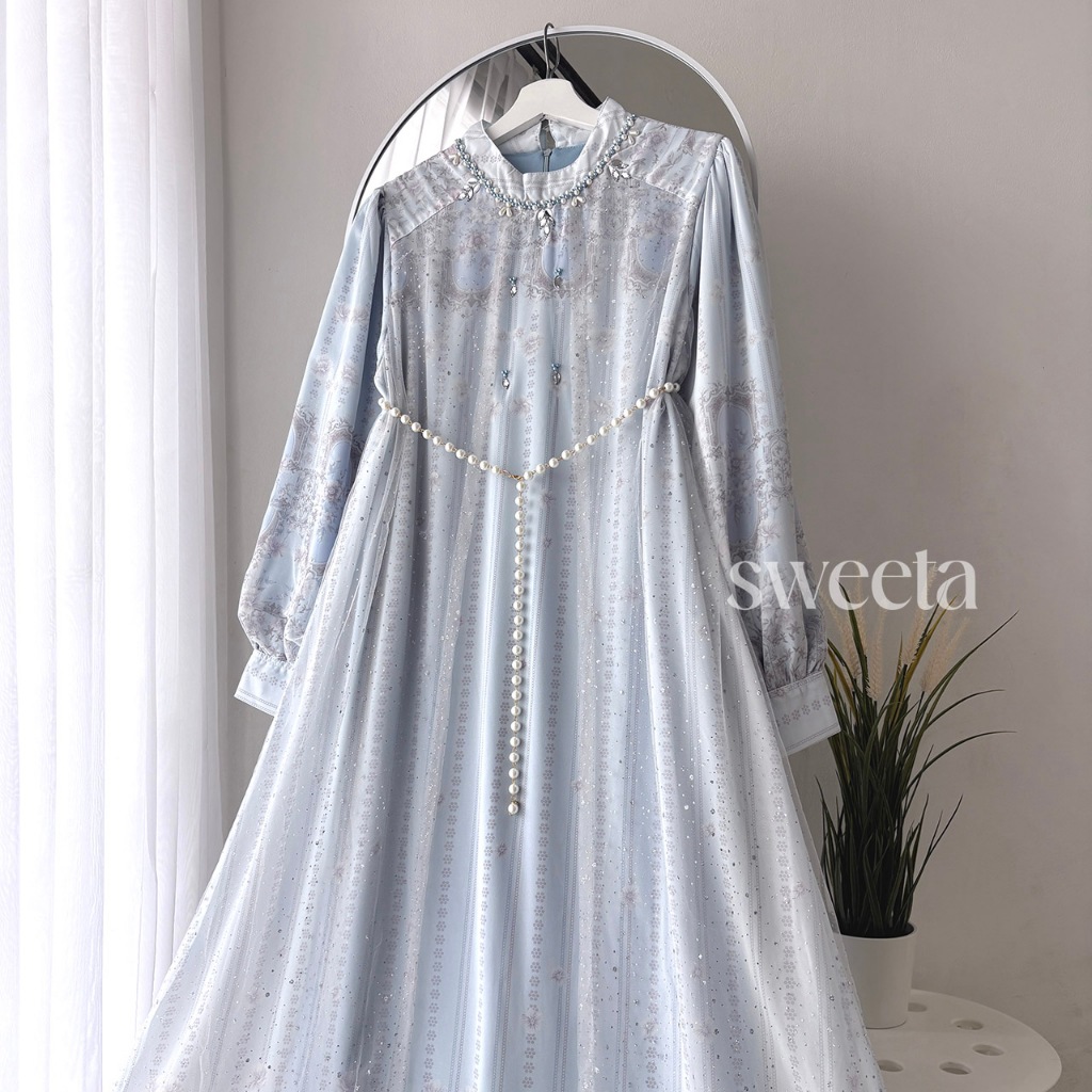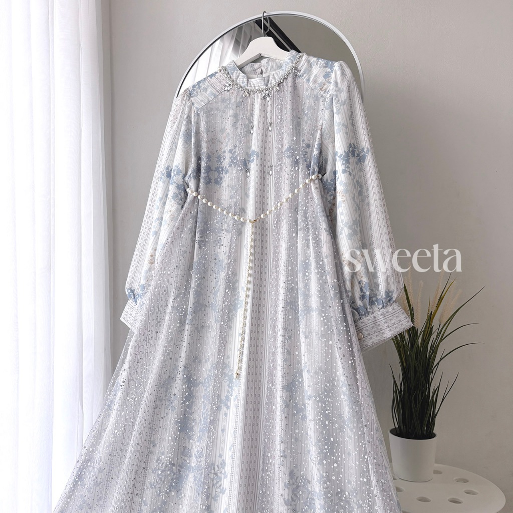 SWEETA | Gamis Ceruty Payet Mix Tille Glitter | Pearl Belt | LD 110 cm | Muslim Women's Clothing