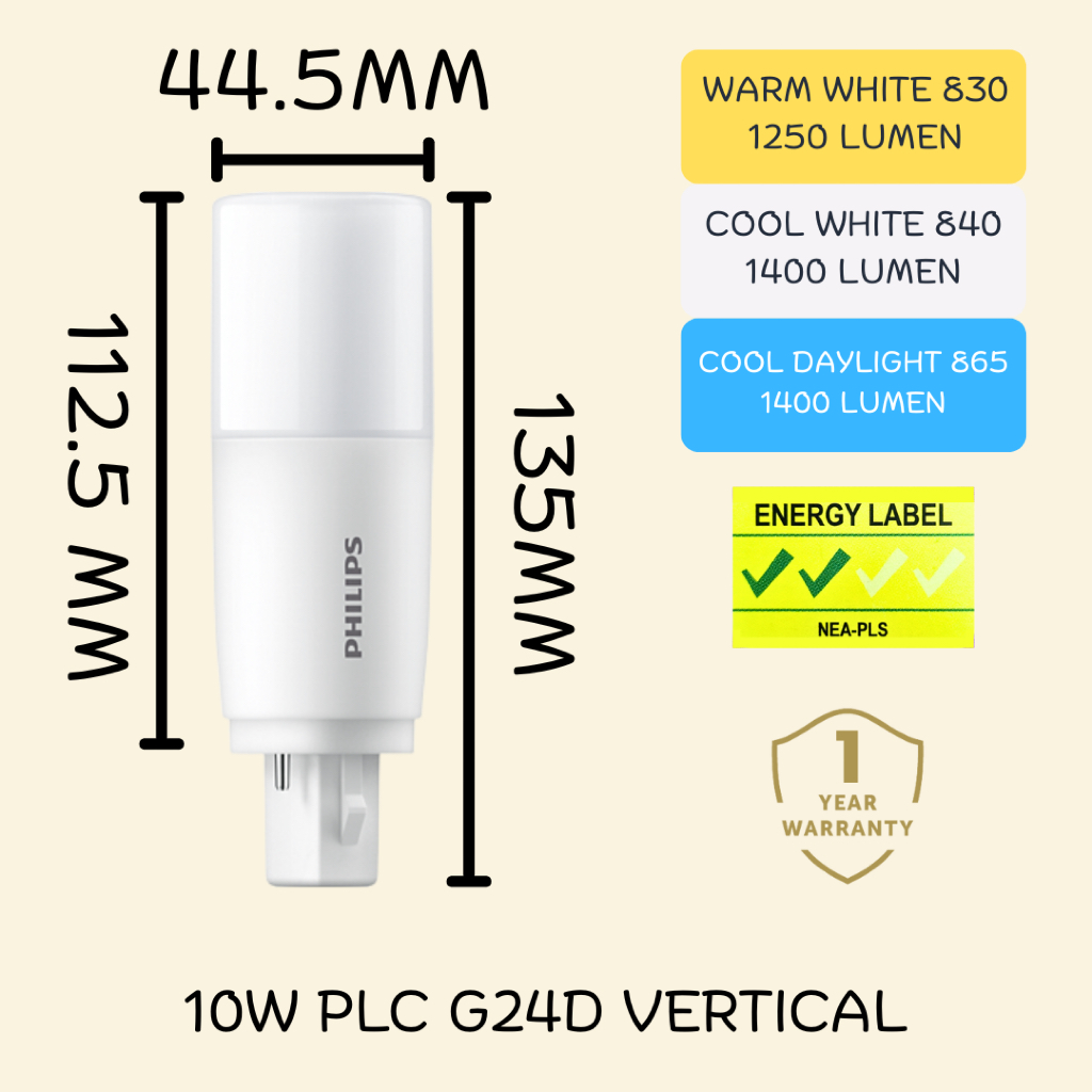 Philips LED Vertical PLC PL-C G24D 6.5W 7.5W 10W Light Bulb Warm White Cool Daylight [1 Year Warranty]