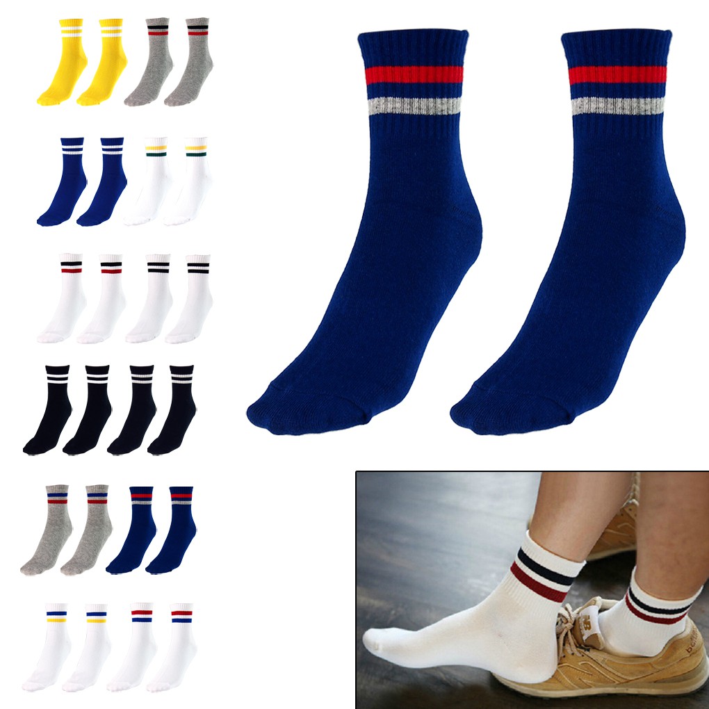 Men Casual Cotton Strip Baseball Football Ankle Mid Socks