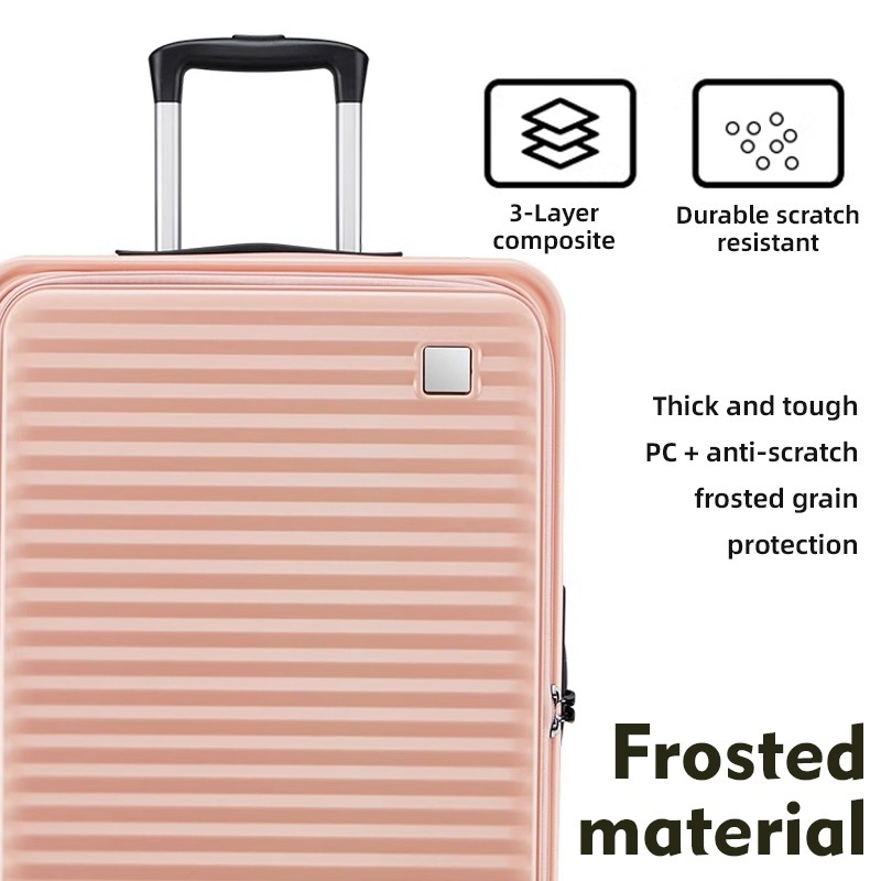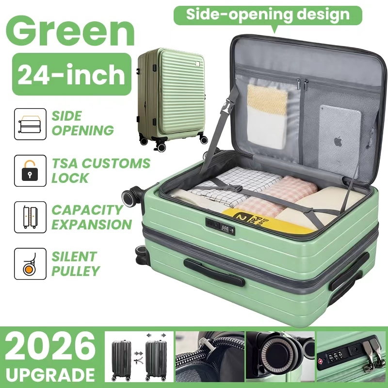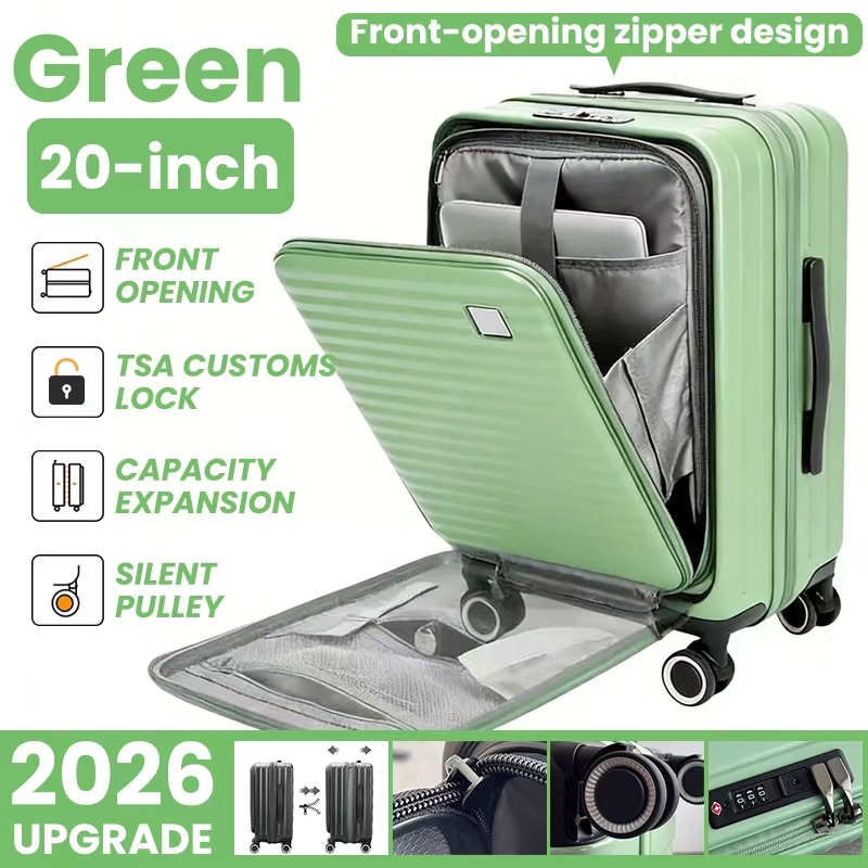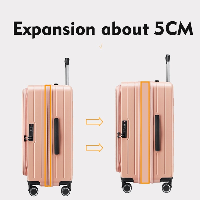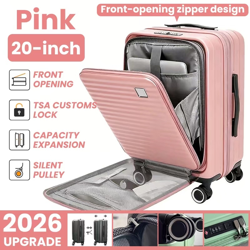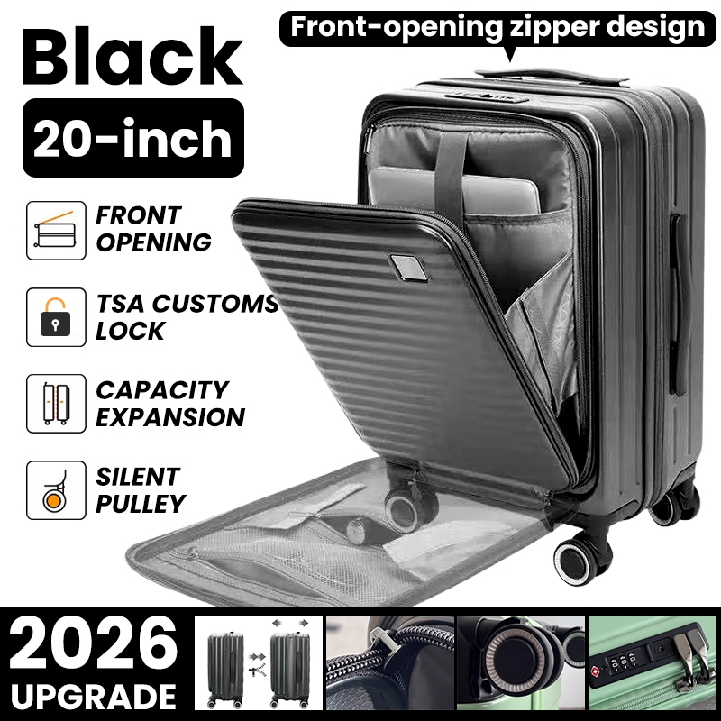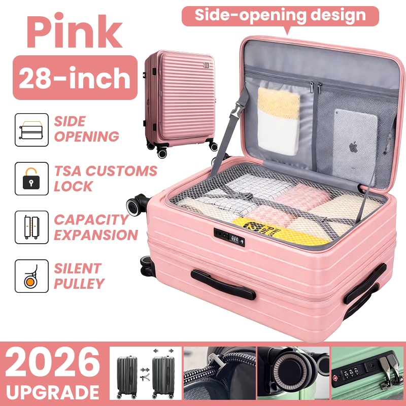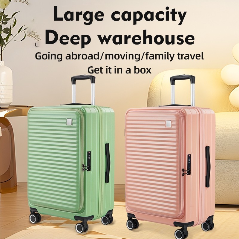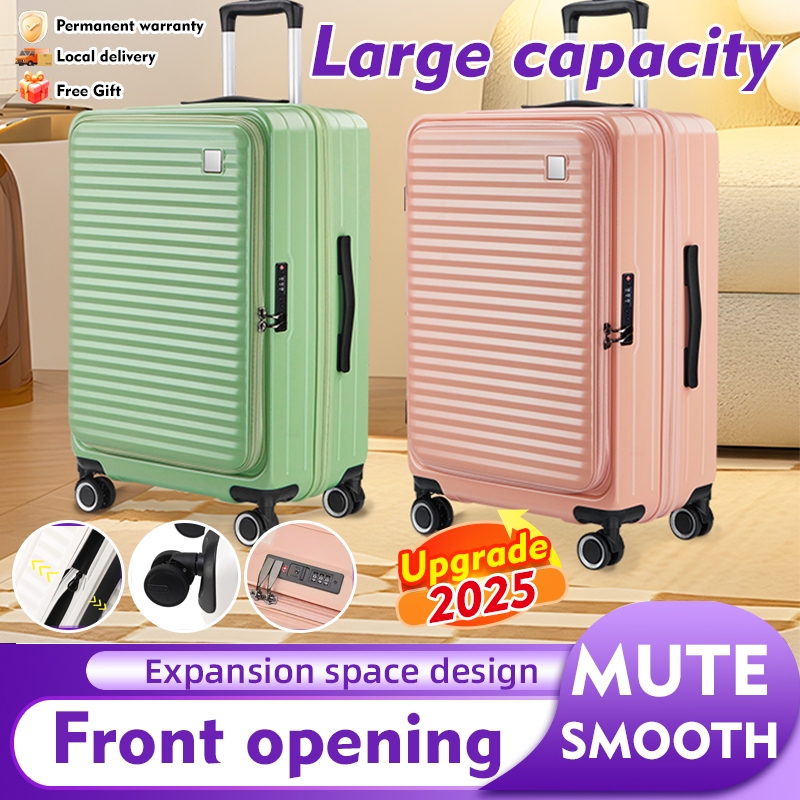 🔥SG Ship in 12 Hour🔥2025 Upgrade 30inch Front-Opening Striped Suitcase Expandable With Computer Bag With Universal Wheels Tas Customs Combination Lock Cabin Luggage