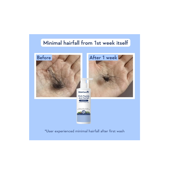 WishCare Multi Peptide Anti Hairfall Shampoo - Rice Water, Rosemary, Capilia Longa, Hyaluronic 250ml