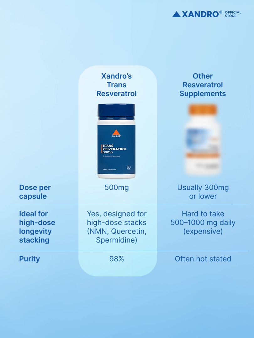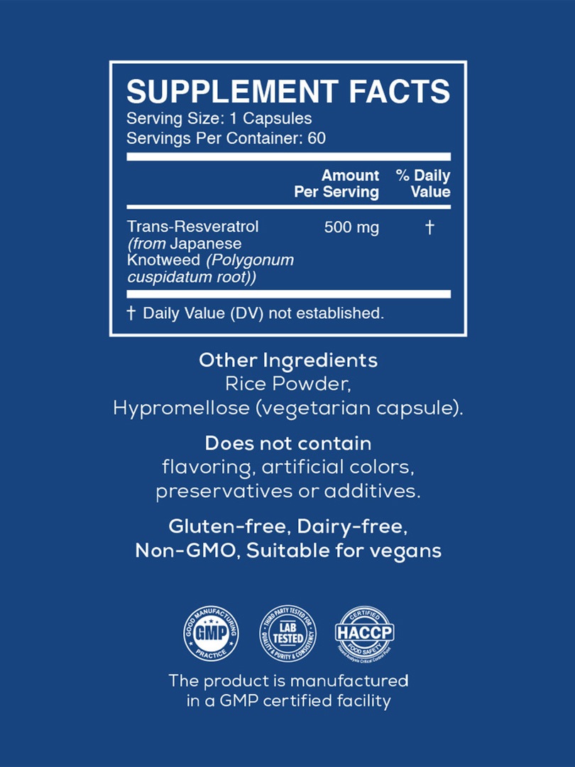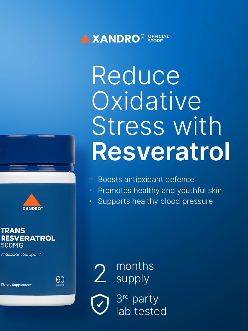 Xandro Lab Trans Resveratrol 500mg - Improve Memory, Strengthen Heart Health, Maintain Stable Blood Glucose Supplement