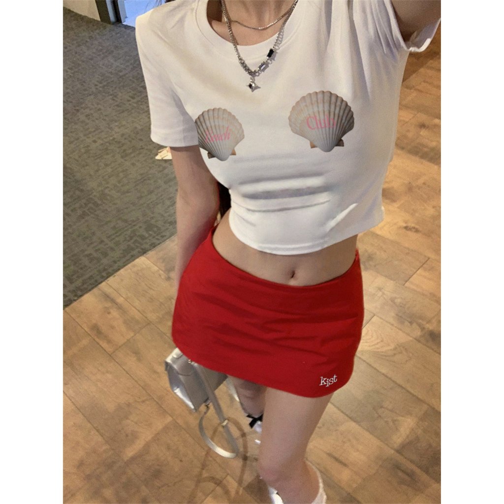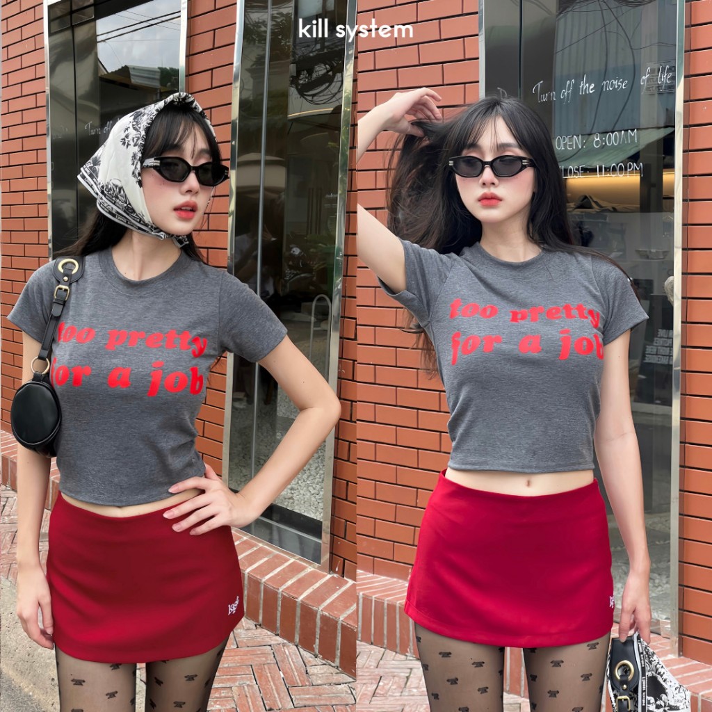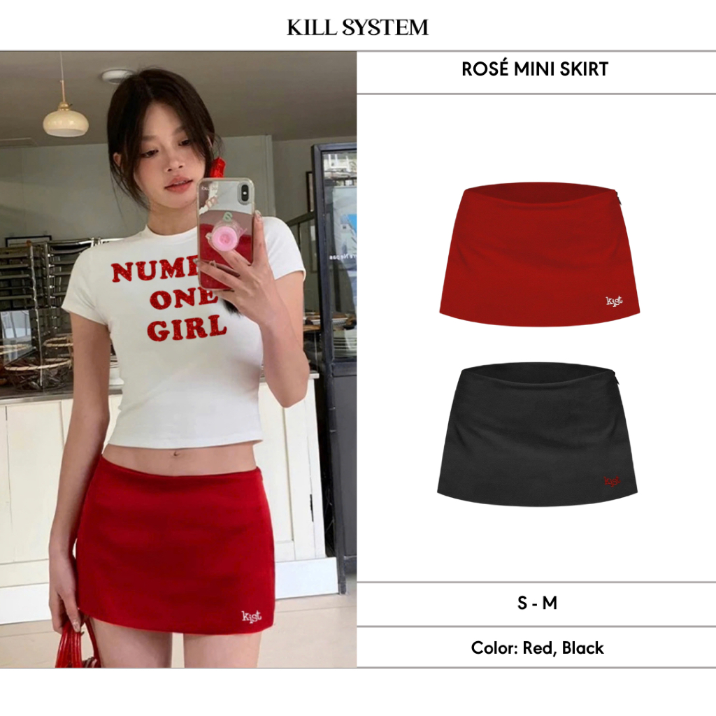 Rosé short skirt embroidered with Kill System A-line shape with protective pants