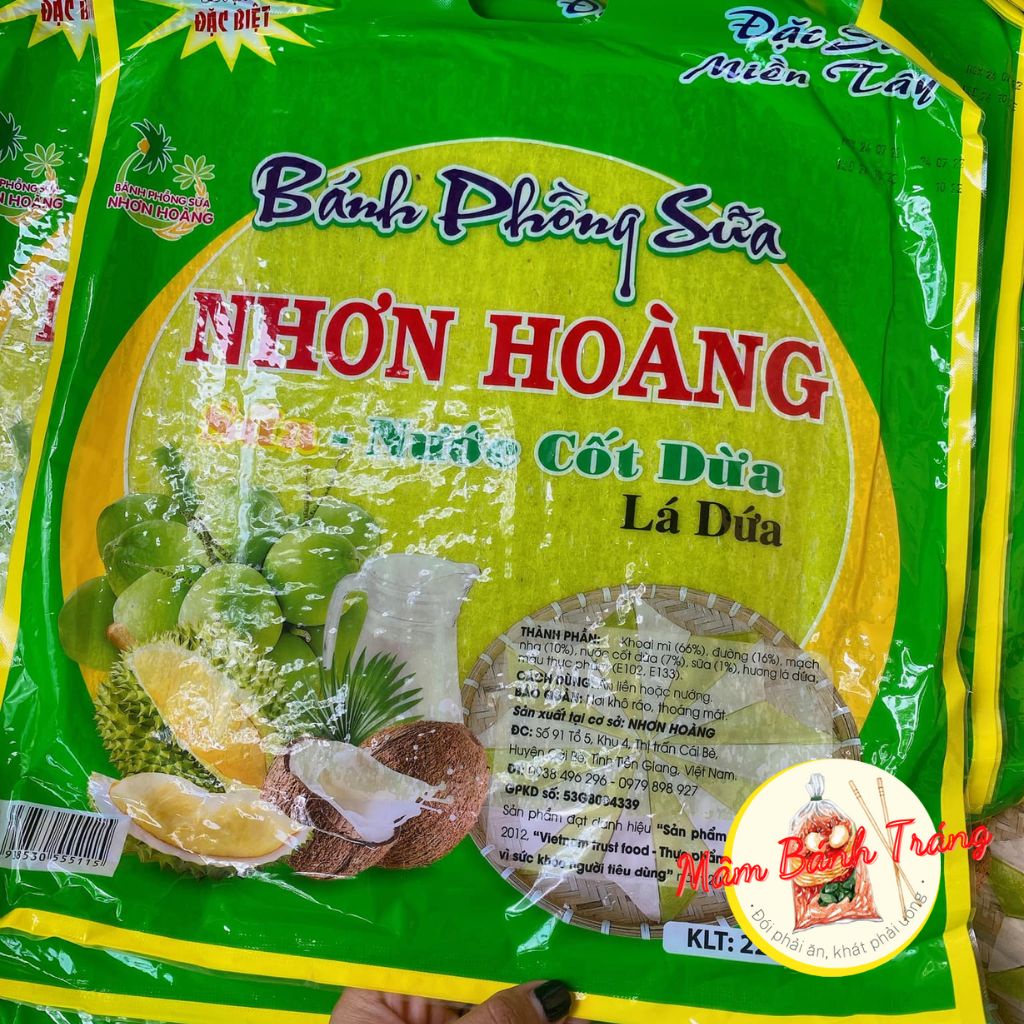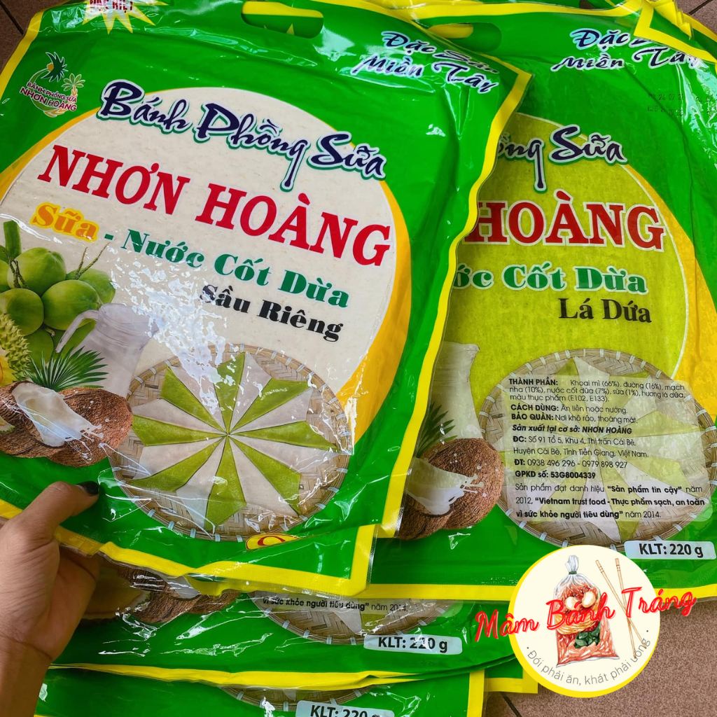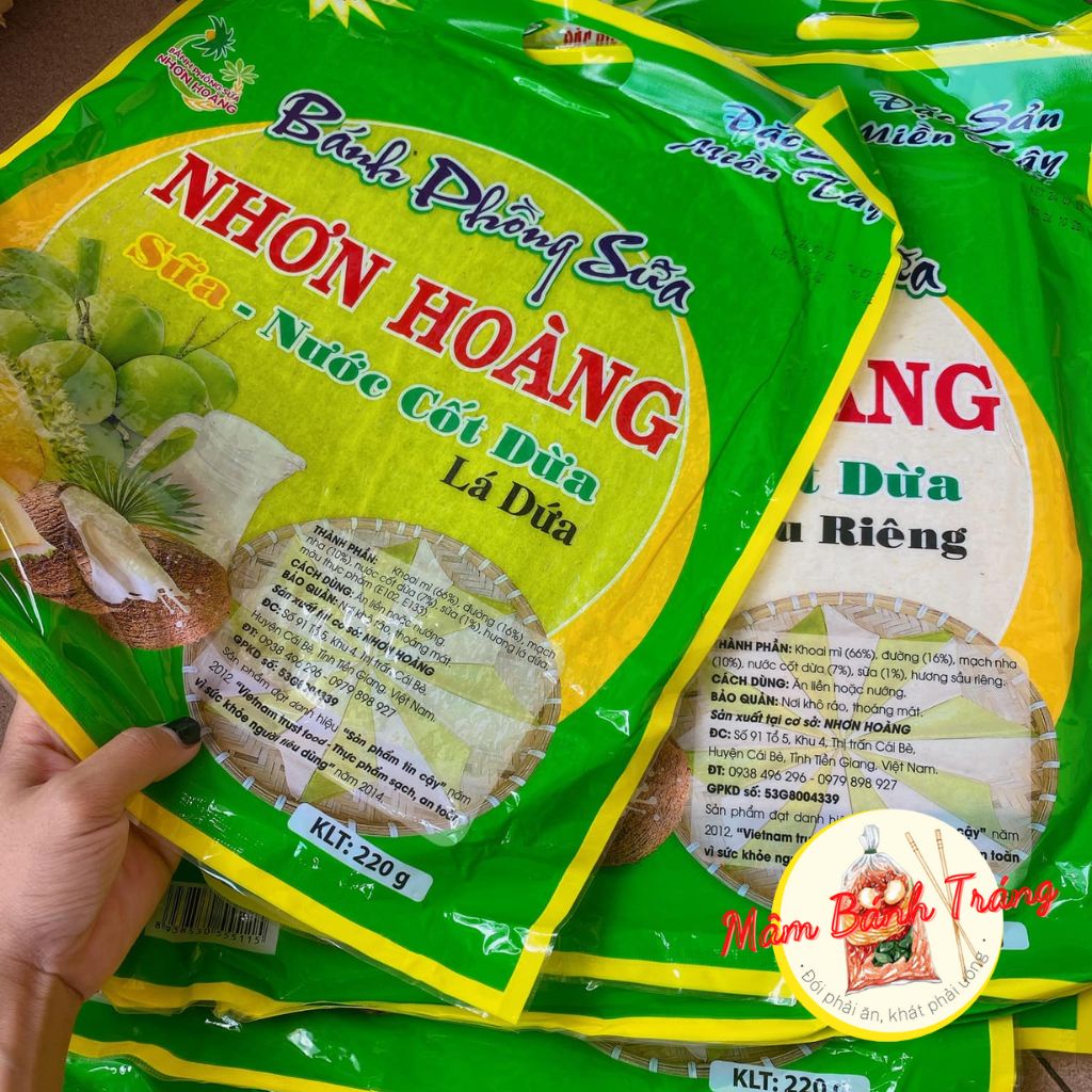 Milk puffs with coconut milk, durian, pandan leaves, Nhon Hoang coconut milk rice paper 400g/bag - 14020192