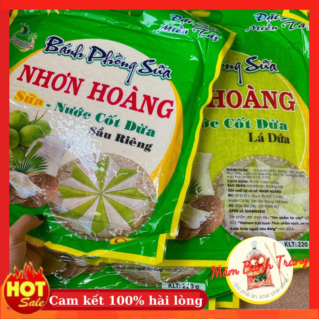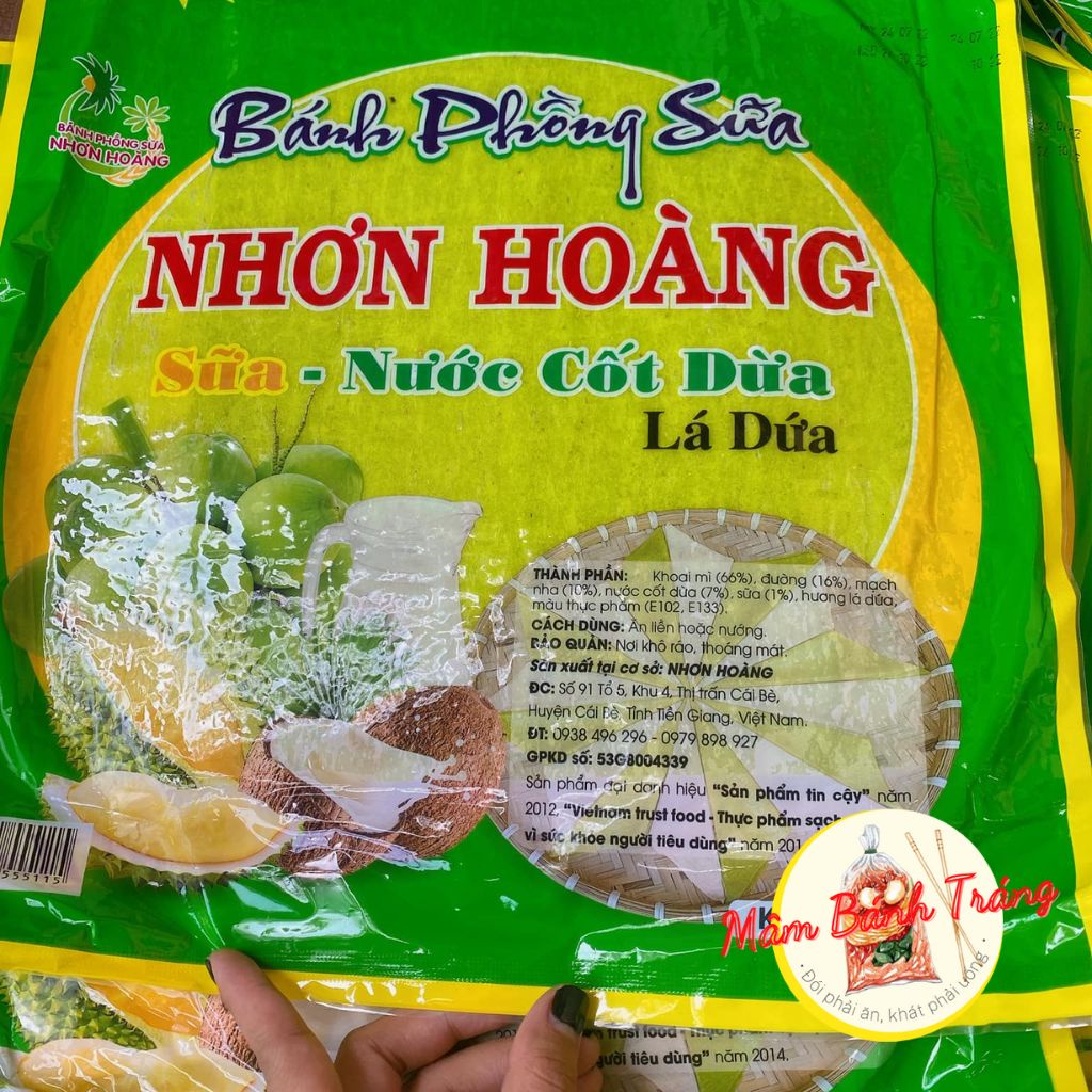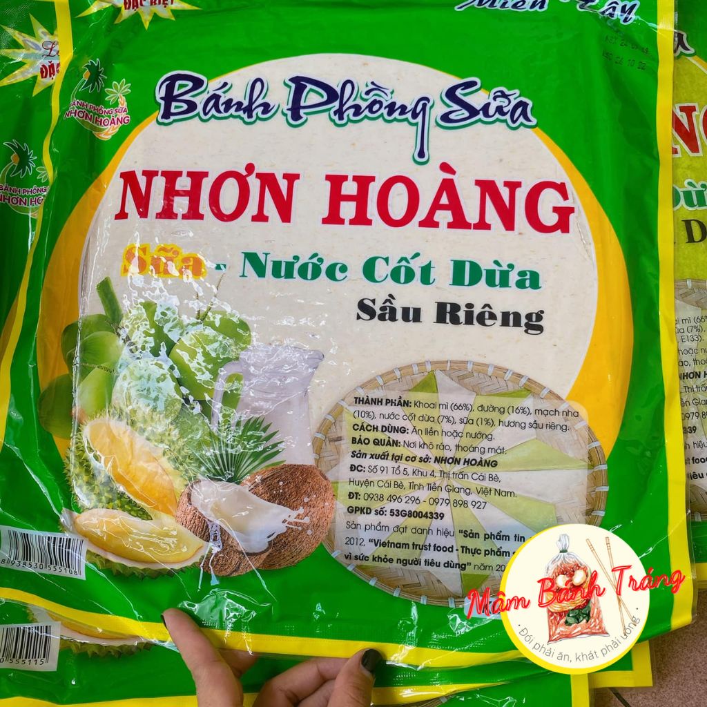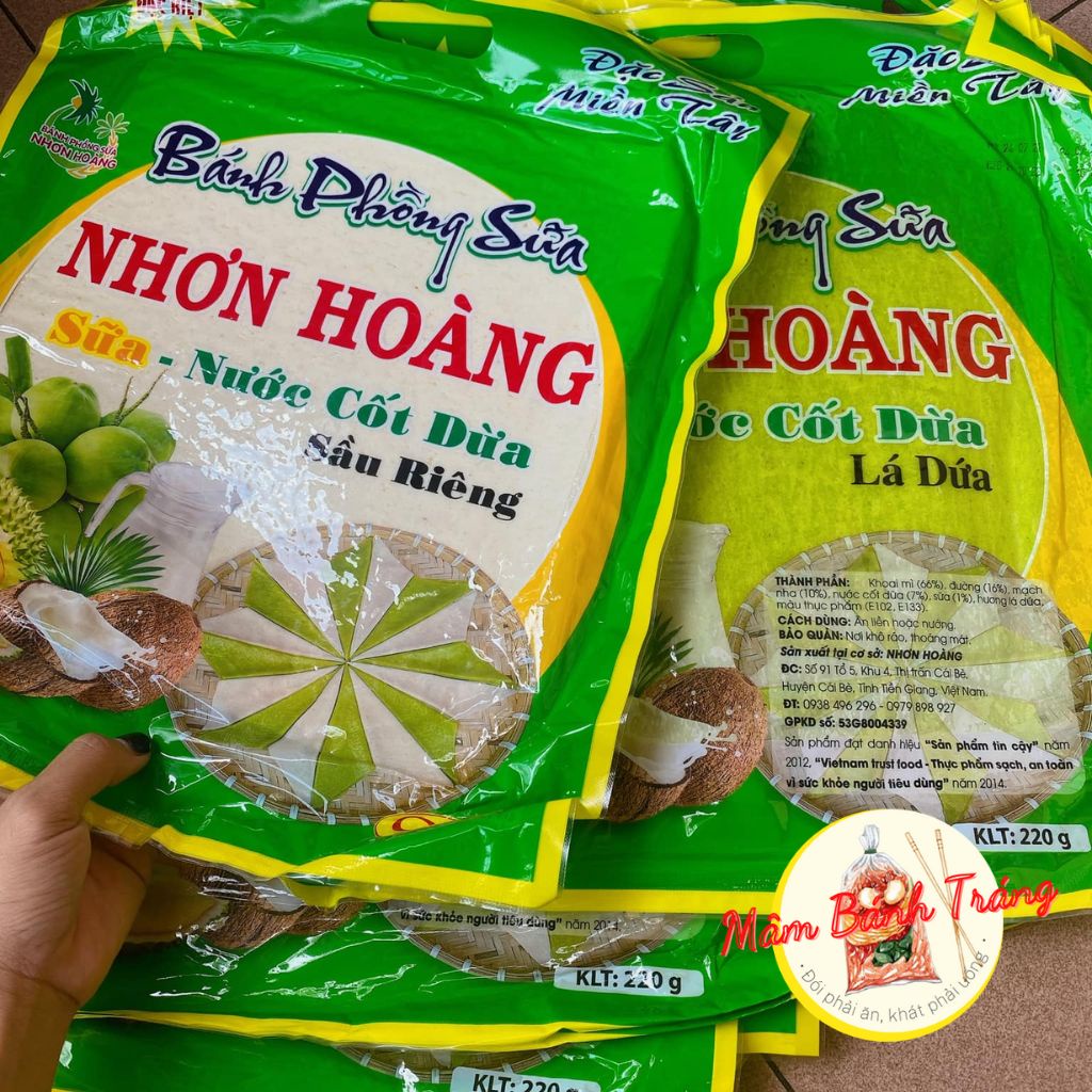 Milk puffs with coconut milk, durian, pandan leaves, Nhon Hoang coconut milk rice paper 400g/bag - 14020192