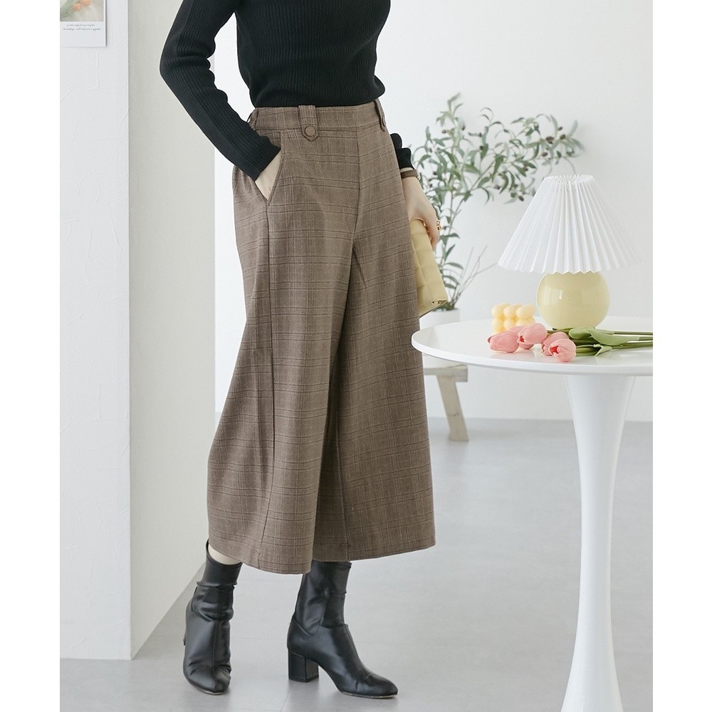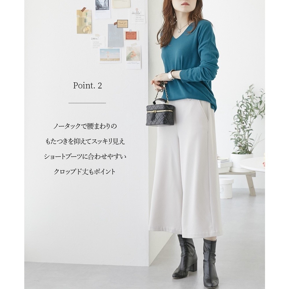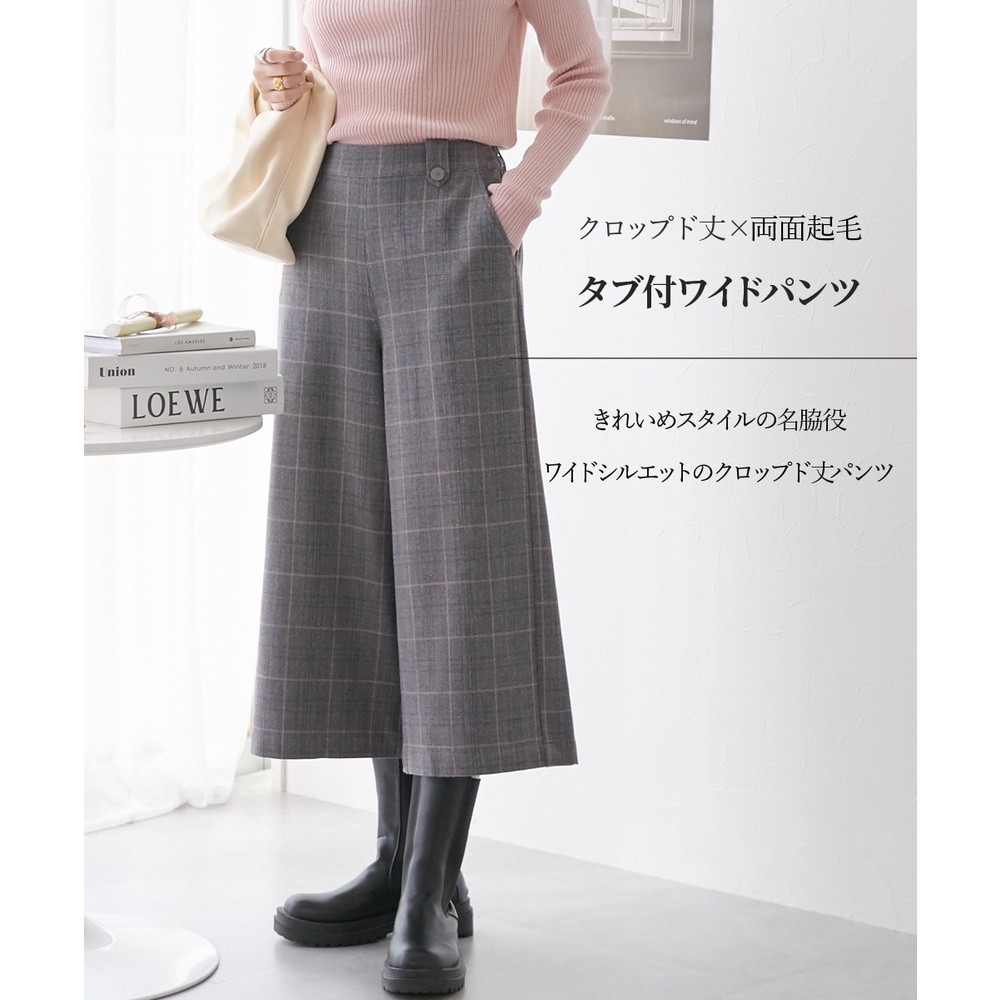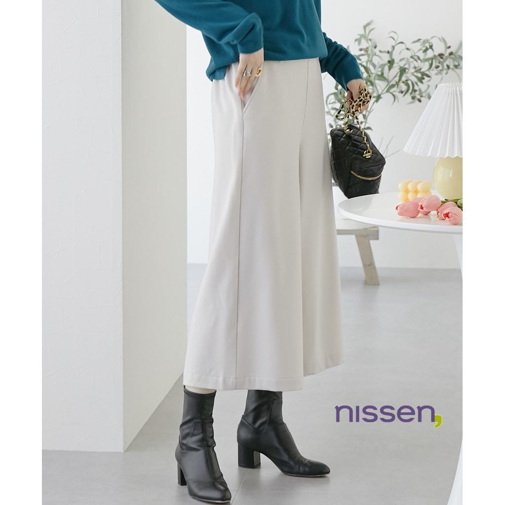 Direct from Japan Nissen_ Elegant Warm Tab-Waist Wide Cropped Pants for Women - Comfortable Double-Sided Brushed Fabric Elastic Back Waist Stylish Versatile Plus Size Friendly Easy Care Wrinkle-Resistant Leg-Lengthening Work Casual Autumn Winter