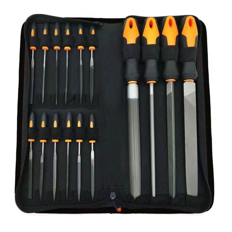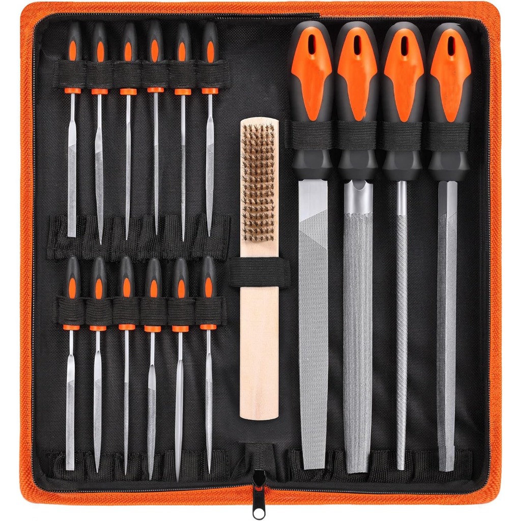 16/17pcs Metal File Set, T12 Drop Forged Alloy Steel, Flat/Triangle/Half-round/Round Large File and 12pcs Needle Files with Carry Case Kit