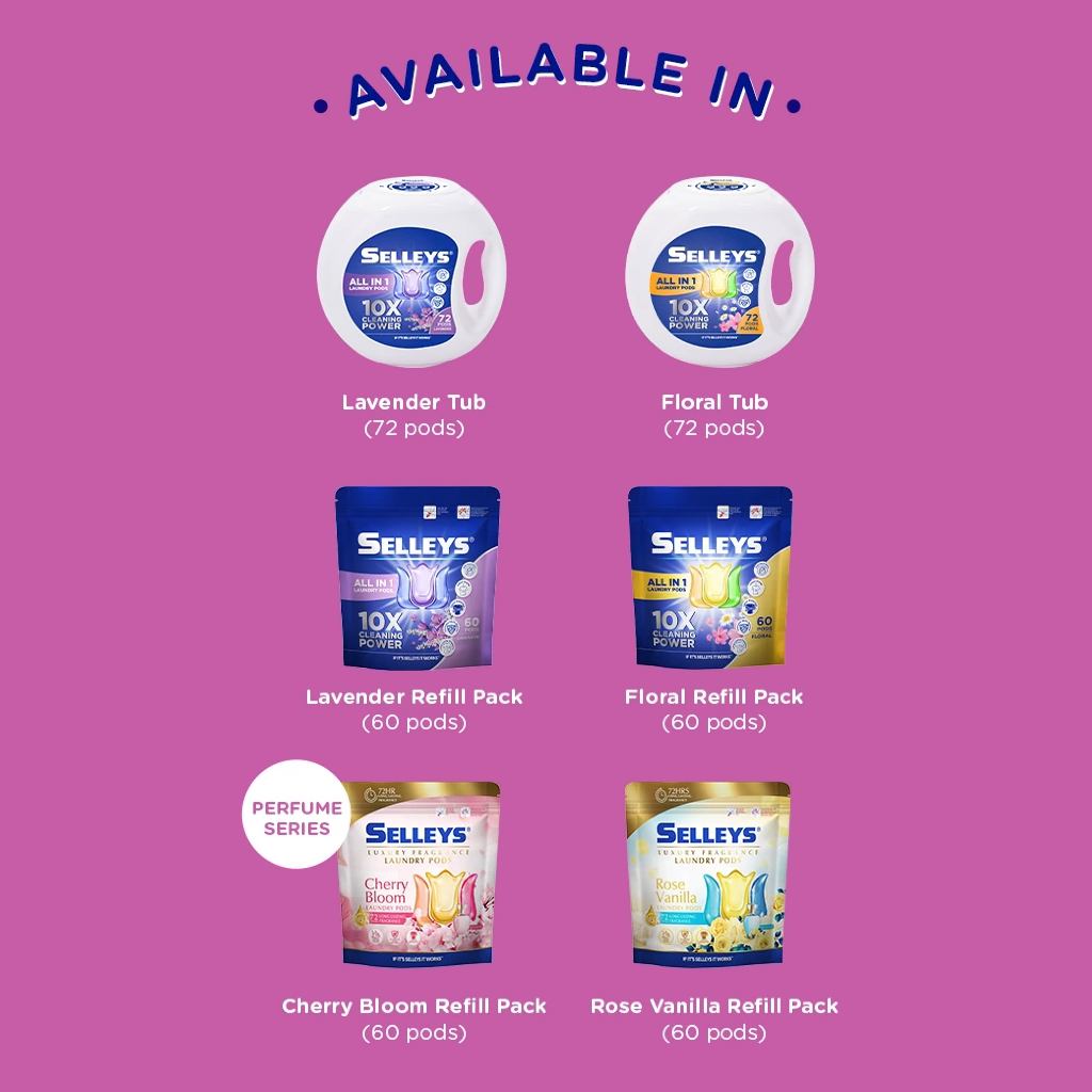 Selleys Laundry Pod 72 pods (Floral / Lavender / Cherry Bloom / Rose Vanilla) Refill (60pods)