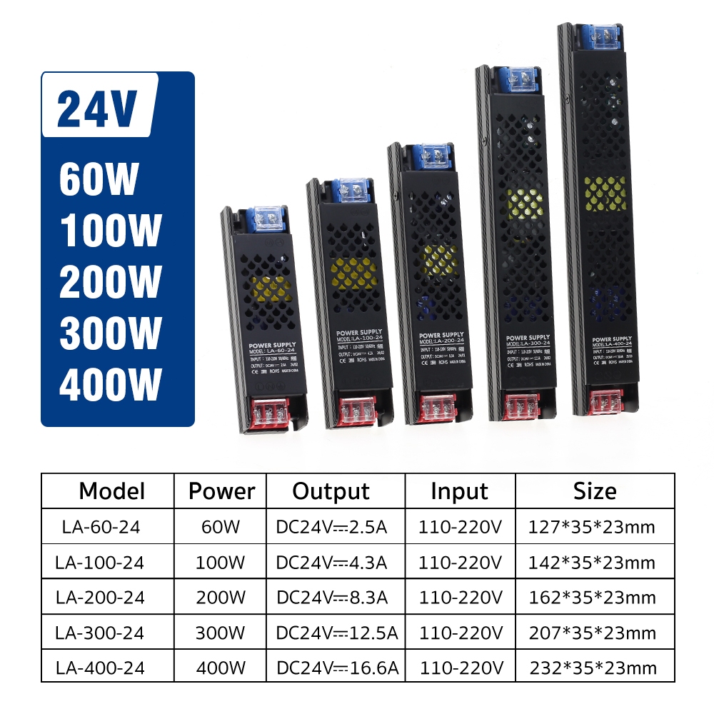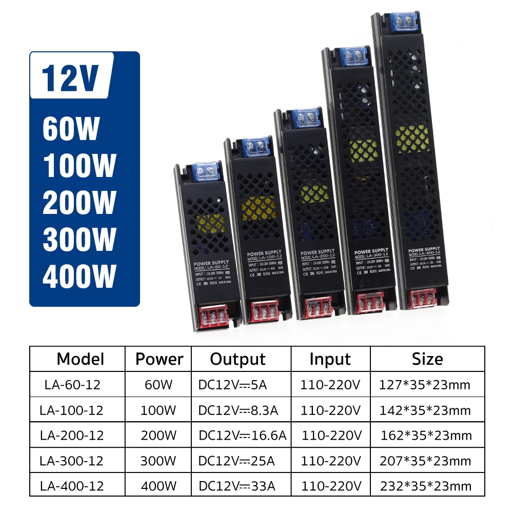 Ultra Thin Power Supply DC12V 24V 60W 100W 150W 200W 300W 400W Lighting Transformers Led Driver For Led Strip