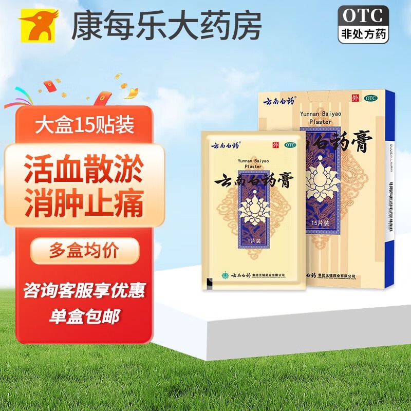 云南白药膏6.5cm*10cm*15贴膏药贴活血散瘀消肿止痛祛风除湿用于跌打损伤瘀血肿痛风湿疼痛