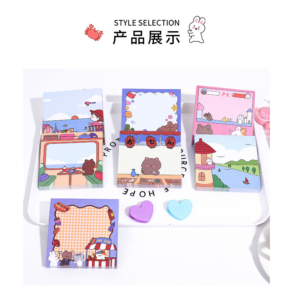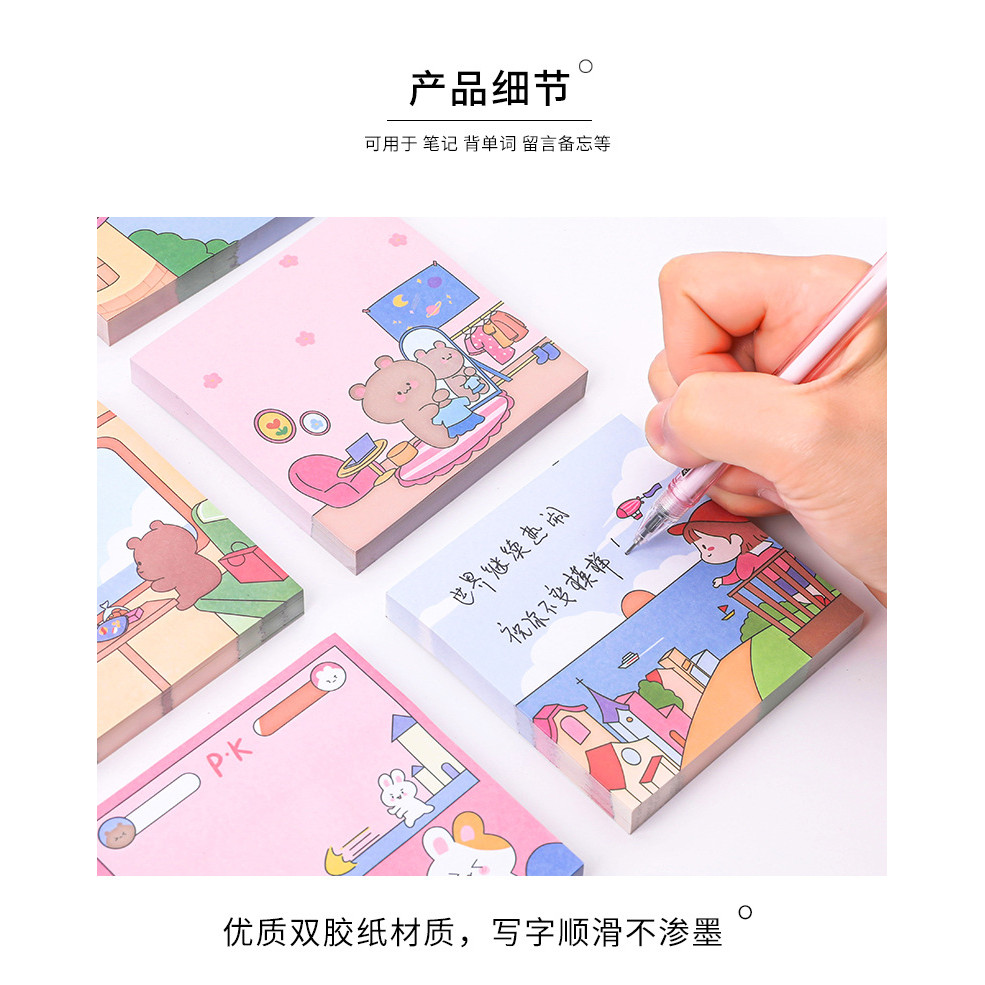 100PCS Cute Sticky Notes Post-it Note Student Message Notes N Times Posted Cartoon Stationery Notes To Do List Memo
