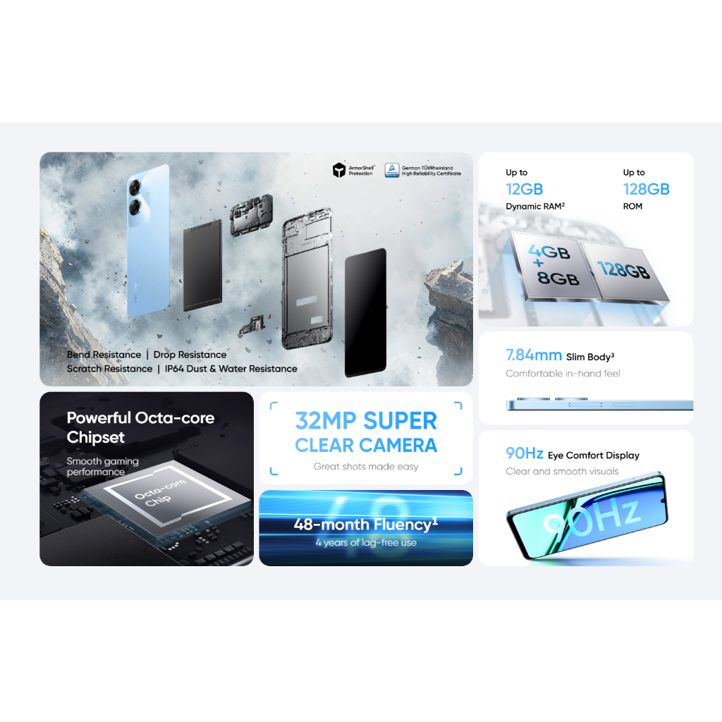 realme Note60 12GB(4+8)+128GB| Armorshell Tough Build| 48month Fluency| Rainwater Smart Touch| 90Hz Comfort Display