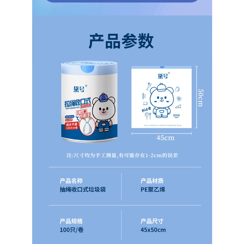 upgraded Plastic Trash bag 45cm x 50cm 100 pcs thick trash bag Drawstring Garbage Bag / Rubbish Bag / Bear design