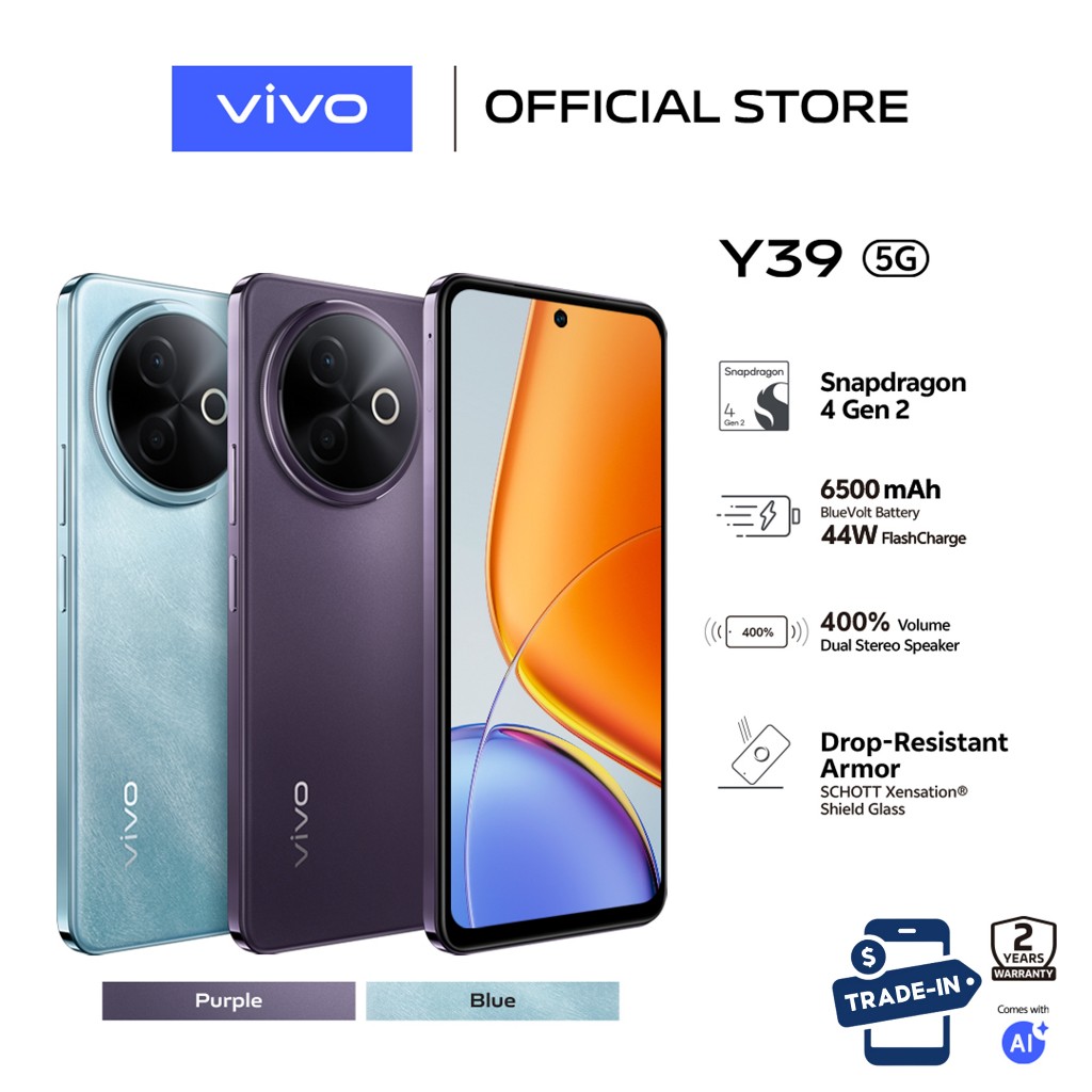 vivo Y39 5G 8GB+8GB Extended RAM +256GB | 6500mAh Battery | Snapdragon 4 Gen 2 | 44W Flash Charge | 50MP Camera