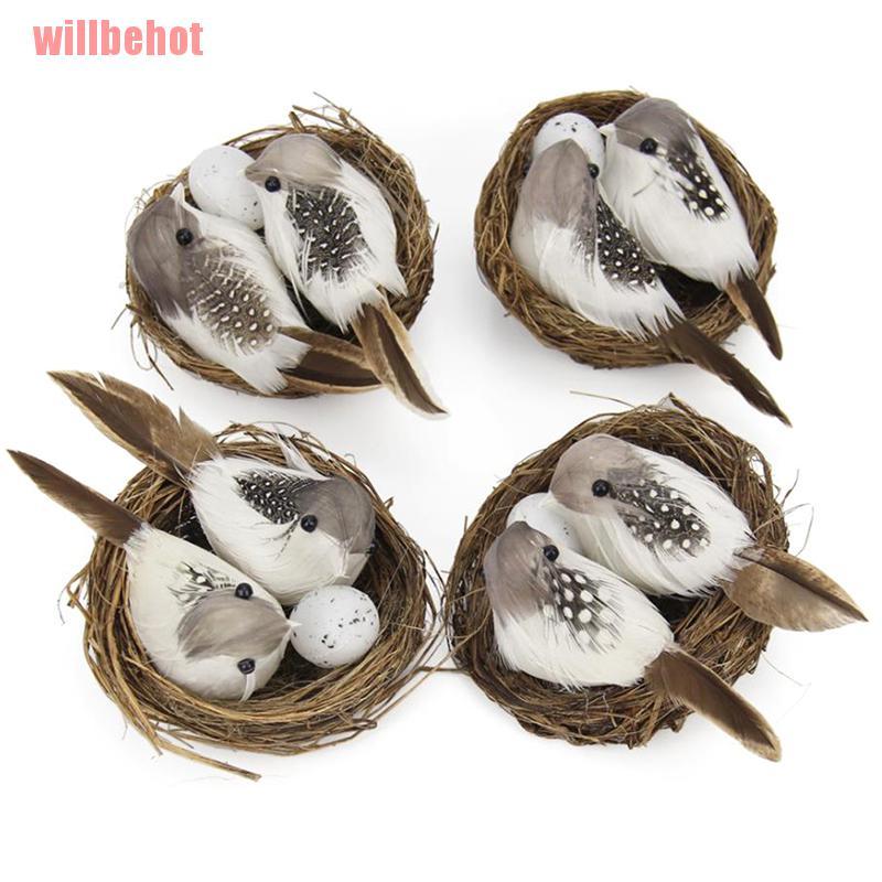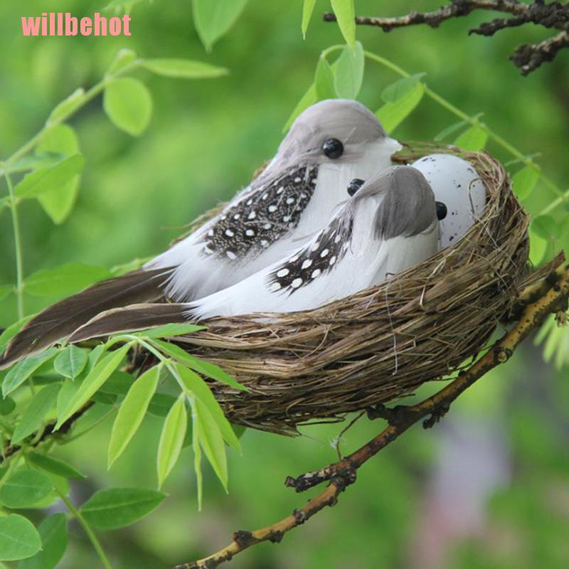 willbehot 1Set Simulation Fake Bird Nest Nature Circle Bird Cage Set Gardening Decorations
