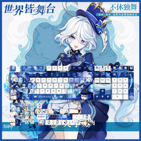 wireless keyboard bluetooth keyboard mechanical keyboard Genshin Impact Funina Water God Keycaps Sublimation PBT Game Two-Dimensional Mechanical Keyboard Genshin Impact Peripherals