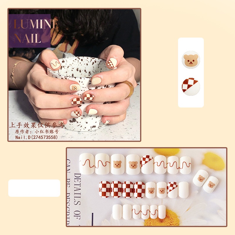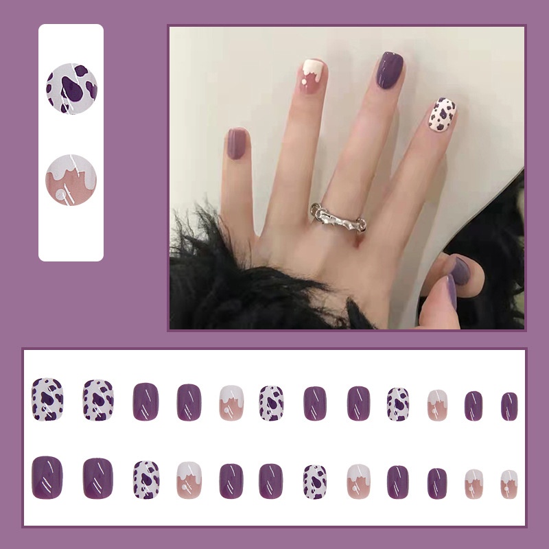 with 24 Pcs Sticker Glue 24Pcs Press On Nails Nail Art Patch Fake Nails Flase Nails Waterproof Detachable Nail Patch