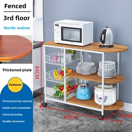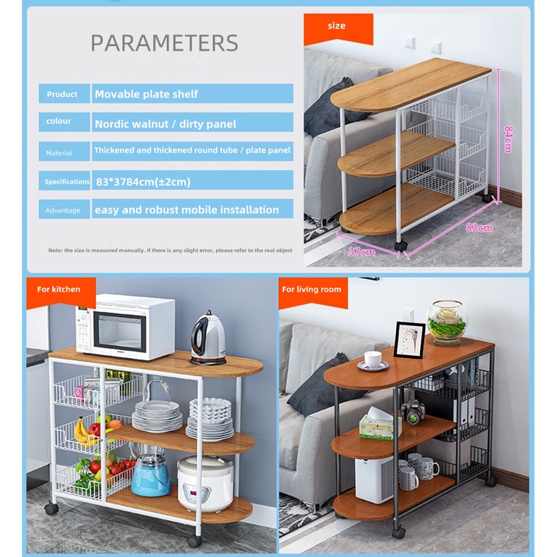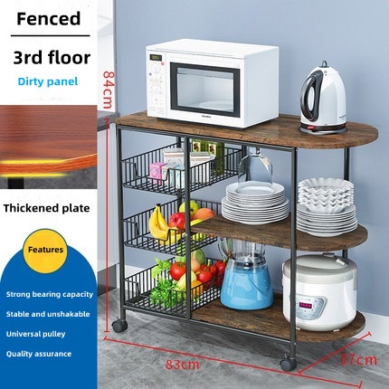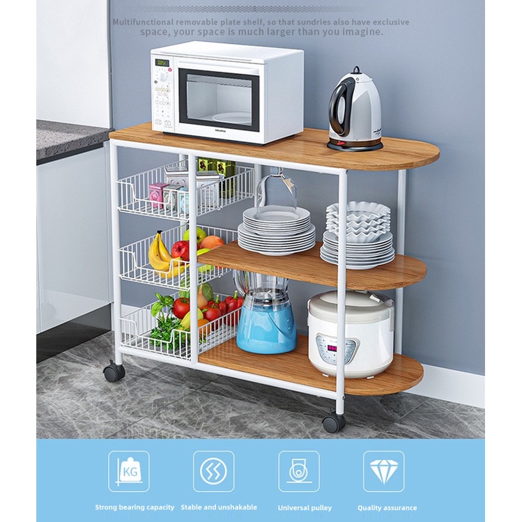 wooden Kitchen rack Steel basket organizer shelf Movable Kitchen vegetable rack Kitchen shelf with wheel