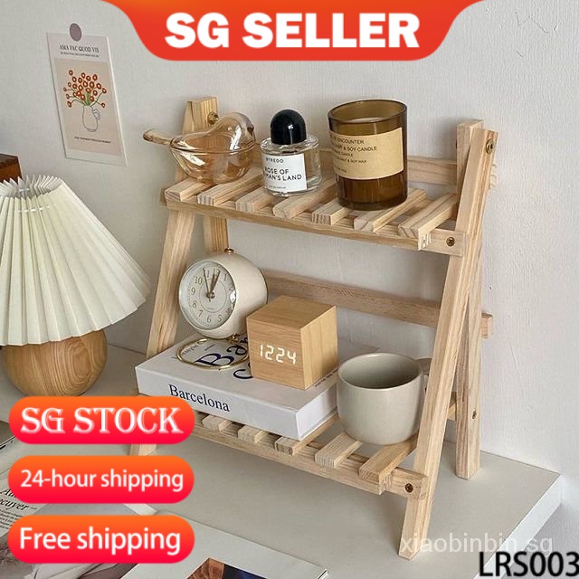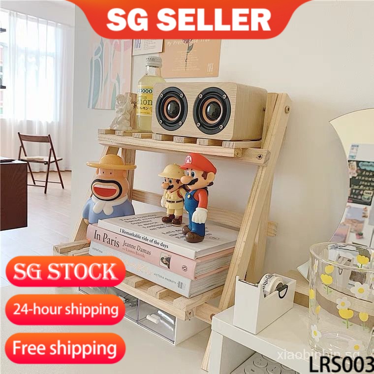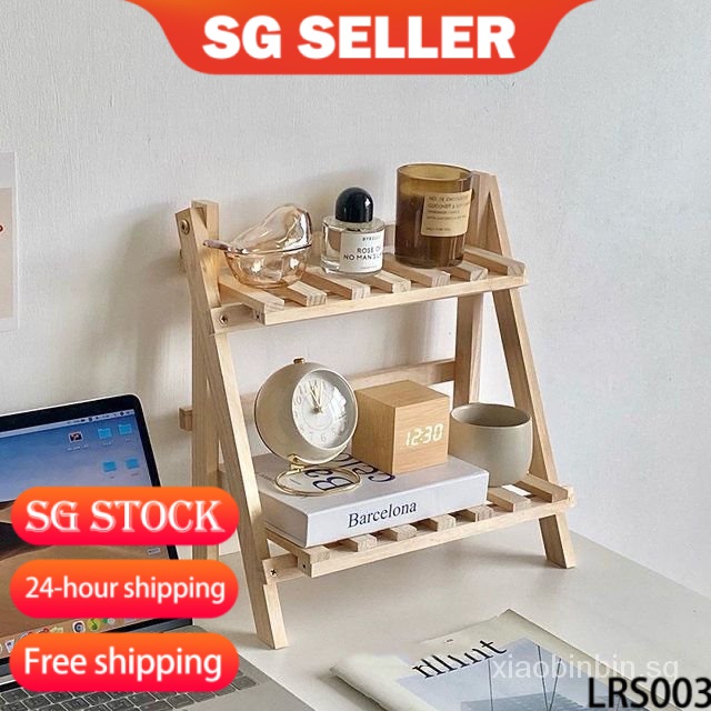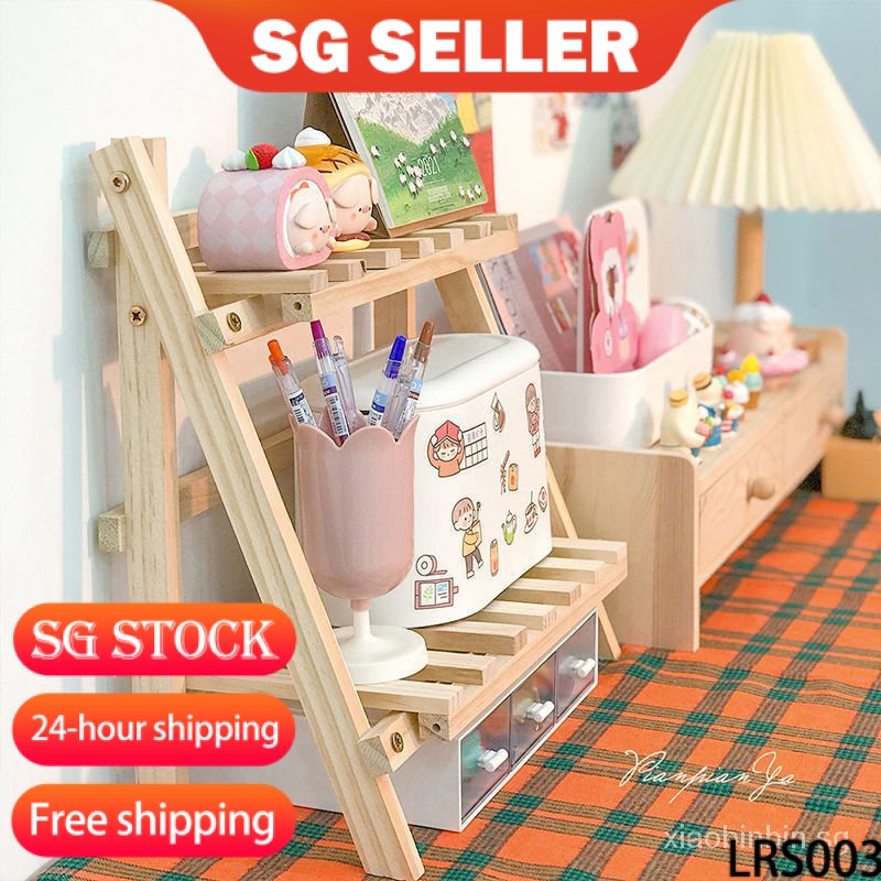 wooden desk shelf ins Simple Wooden Desktop Storage Shelves Double-Layer Shelf Student Dormitory Desk Trapezoidal Elevated