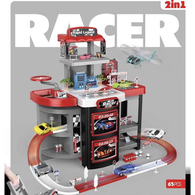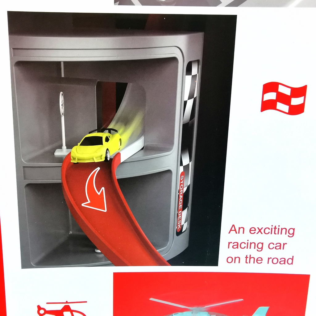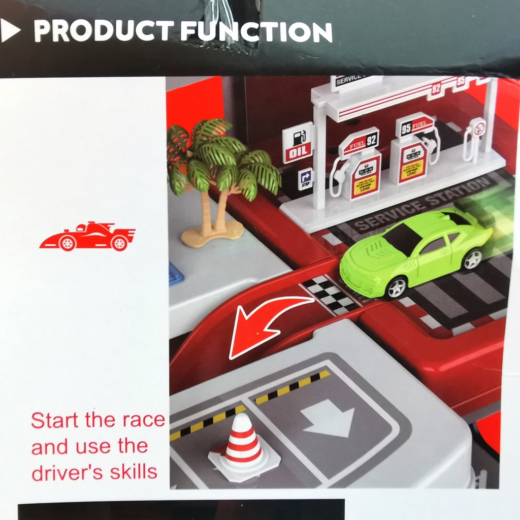~ Racer Parking Lot Toy with Race Track Foldable Suitcase Sound and Light Version Toy Car Park Carpark